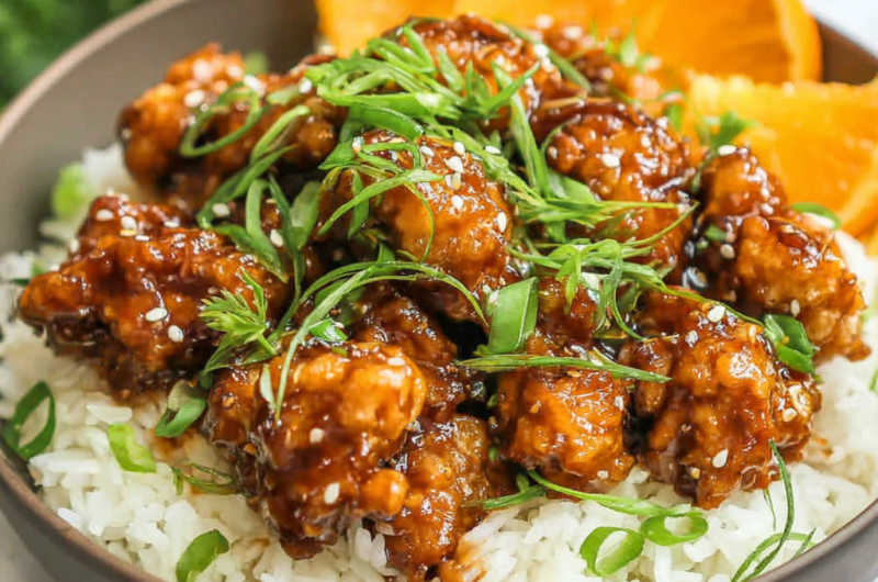 Orange chicken is best enjoyed immediately while the chicken is still crispy. Serve it over steamed rice or with stir-fried vegetables to balance out the sweetness. Garnishing with sesame seeds or sliced green onions can add a touch of freshness.
