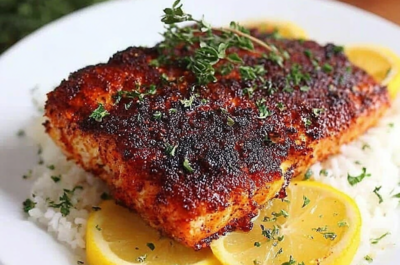 The fresh lemon juice brightens up the rich, spicy flavors of the blackened fish, creating a well-balanced dish. Squeezing lemon over the fish at the table can enhance the overall dining experience, adding a zesty finish to each bite.