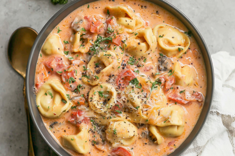 Tortellini serves as the heartiness of the soup. The pasta fills each spoonful with a satisfying texture, making it a complete meal.