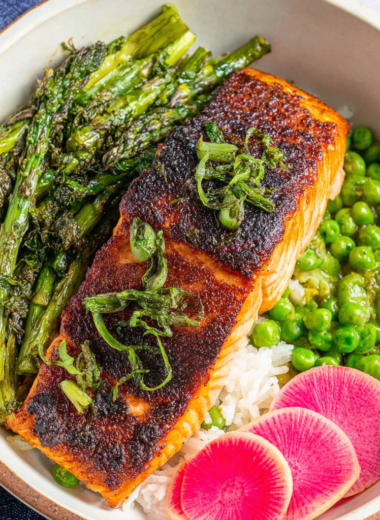 Vibrant Spring Salmon Bowls with Asparagus and Peas
