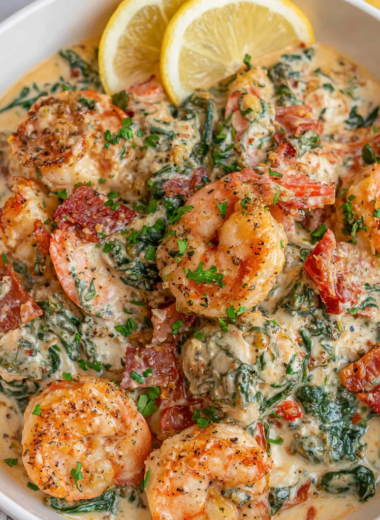 Rustic Tuscan Shrimp with Tomato and Spinach