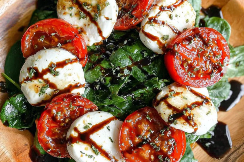 This Caprese salad with spinach is perfect for summer gatherings or as a light meal any time of the year. With simple, high-quality ingredients, it showcases the importance of using fresh produce while balancing flavors that enhance each bite. The creaminess of the mozzarella, the acidity of the tomatoes, and the peppery notes of the spinach come together for a delightful culinary experience.