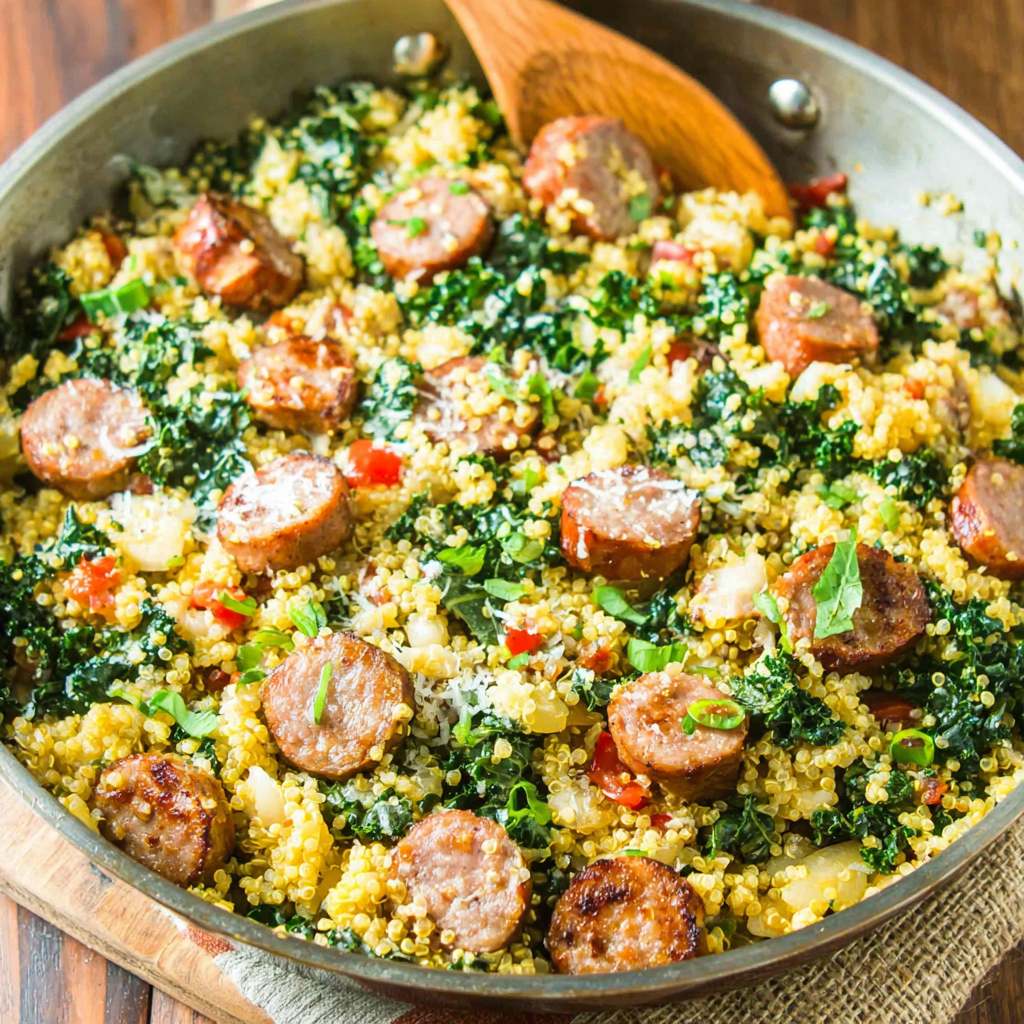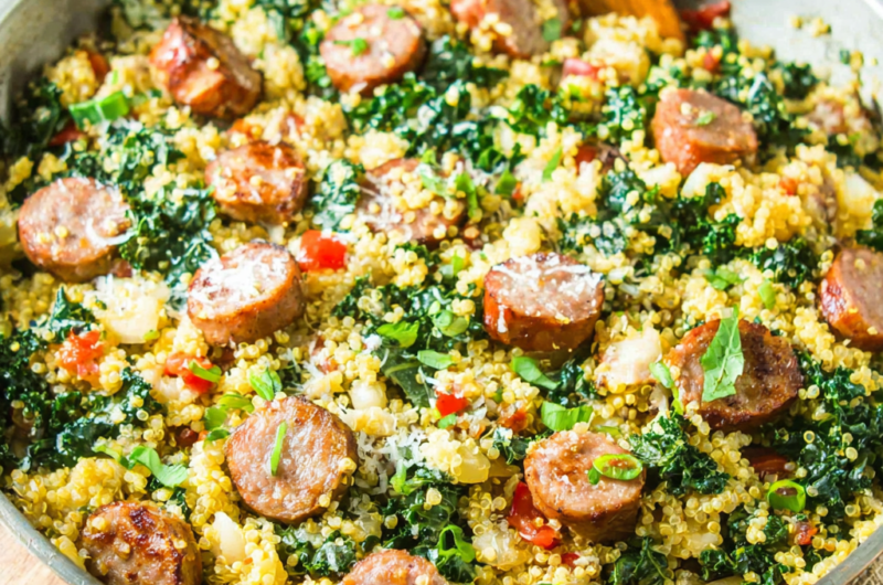 The combination of sautéed sausage with tender kale and nutritious quinoa creates a colorful meal that appeals to the eye and the palate. This dish is not only easy to prepare, but it also serves as a complete source of nourishment, ideal for families or meal prep. Let’s dive into how to create this fulfilling skillet dish!