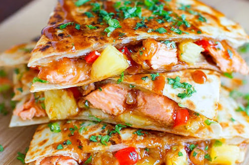 Savoring Teriyaki Salmon and Pineapple Quesadillas
