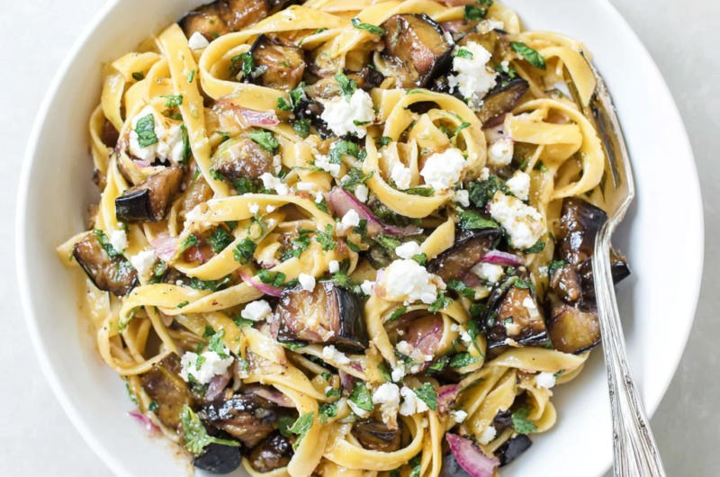 Pasta with eggplant, feta, and mint is a versatile dish full of flavors that can brighten any meal. Its combination of hearty vegetables and creamy cheese creates a delightful experience that leaves you feeling satisfied yet refreshed.